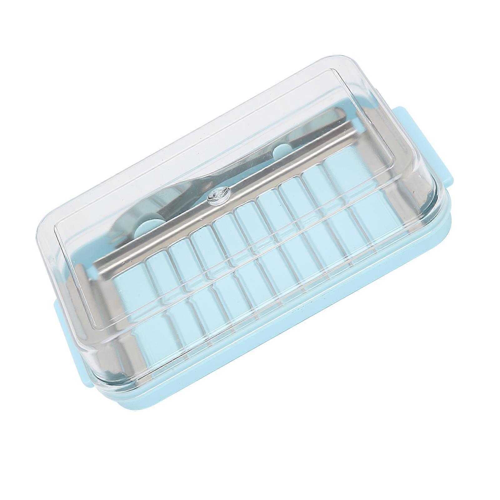 Stainless Steel Butter Cutter Box with Blue Base 19x10.3x4cm