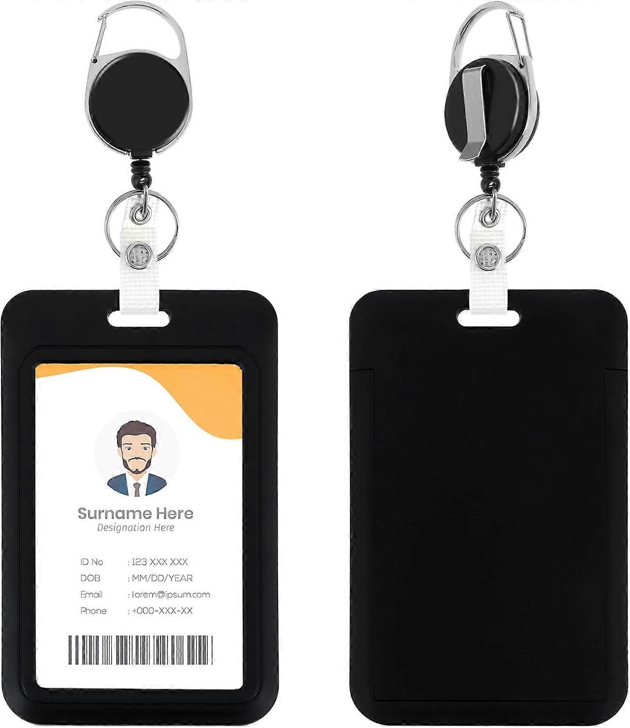 Amaxiu 2 Pack Black ID Badge Holder with 31.5" Heavy Duty Retractable Reel, Compatible with Office Work, Teacher, Men, Women