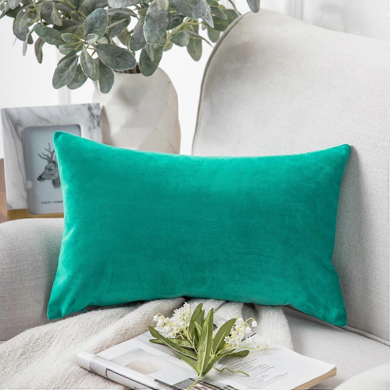 Phantoscope Soft Silky Velvet Square Decorative Throw Pillow Cover, 12" x 20", Turquoise, 1 Pack