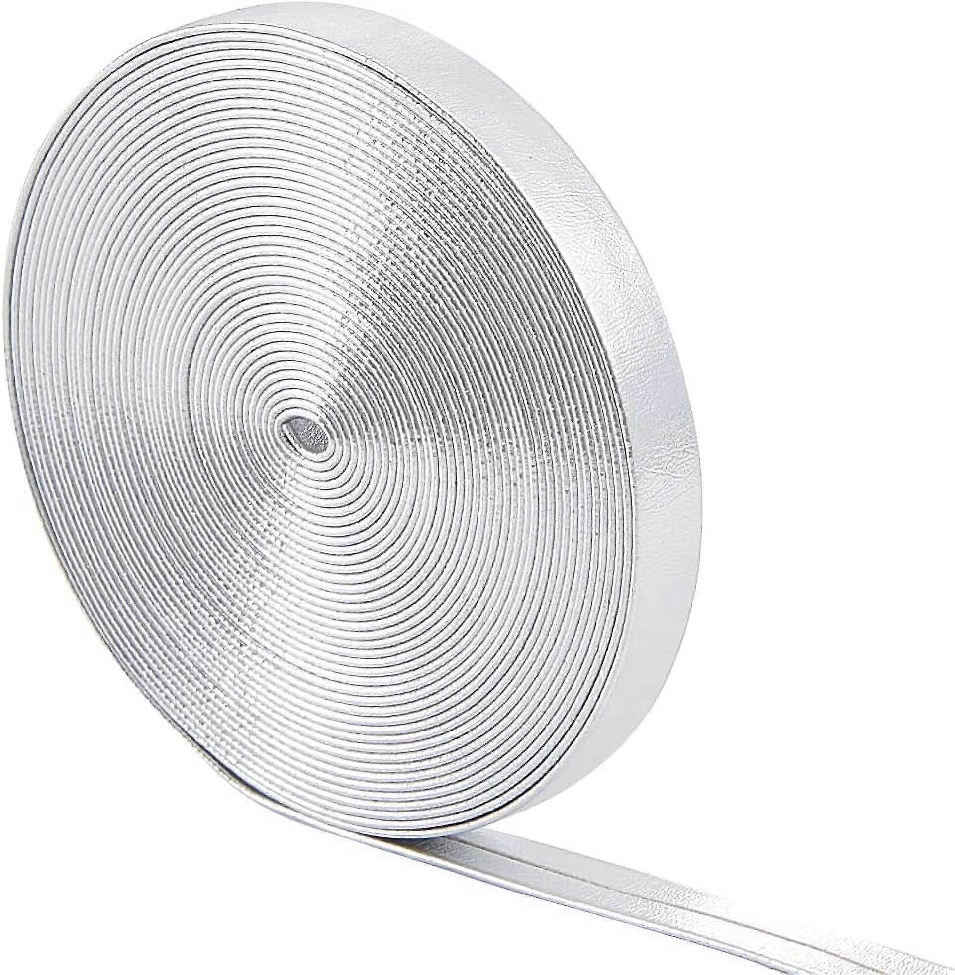 5.5Yds x 0.31" Metallic Silver Shiny Flat PU Leather Cord, Glossy Double Sided Ribbon for Crafts, Pillow Making, Beading, compatible with DIY