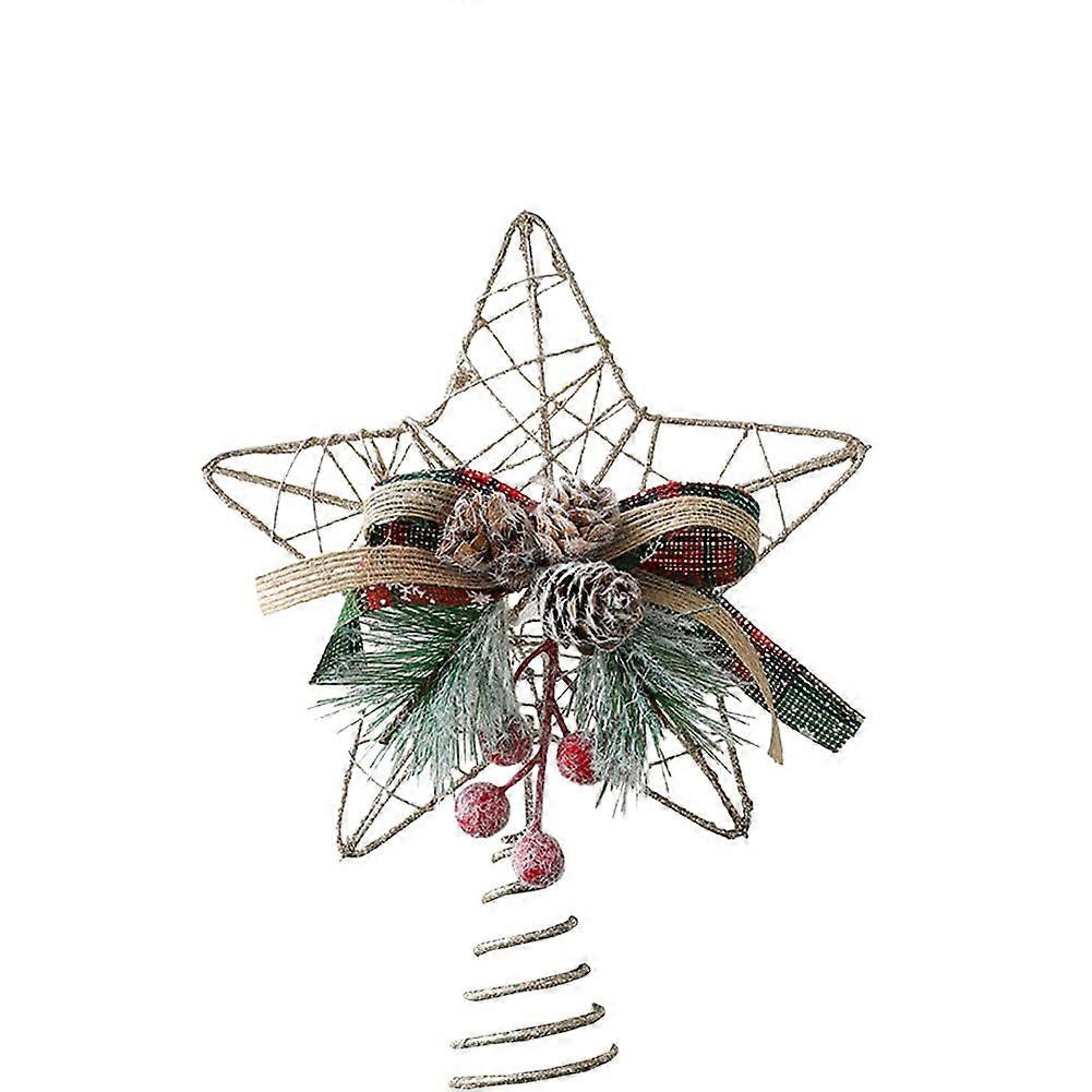 Christmas Tree Topper Star Five-Pointed Star Pendant Tree Top Decoration Berry Pinecone Ornaments Xmas New Year Decoration 2024 Berry Fangkenuo