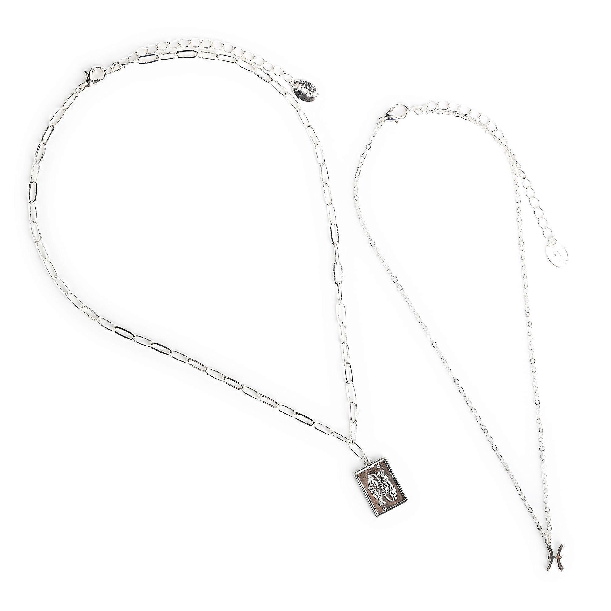 Claire's Girls Silver Pisces Zodiac Sign Necklace Set, Lobster Closure, 2-Pack