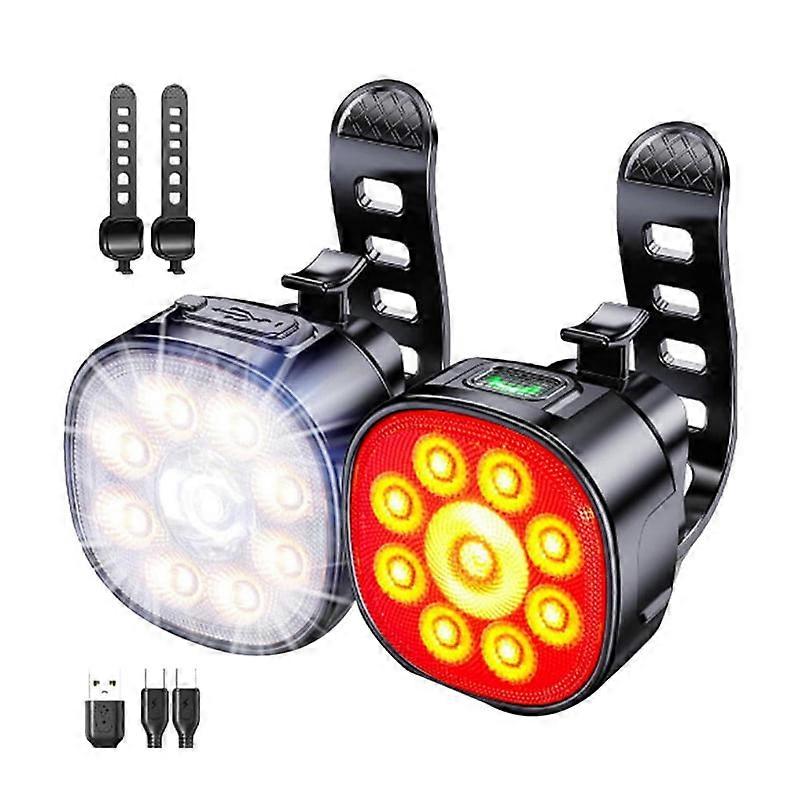 Qtmnekly Bike Lights [4+6 Modes], USB Rechargeable Bike Lights Front & Back, IP65 Waterproof Bicycle Lights for Road Mountain