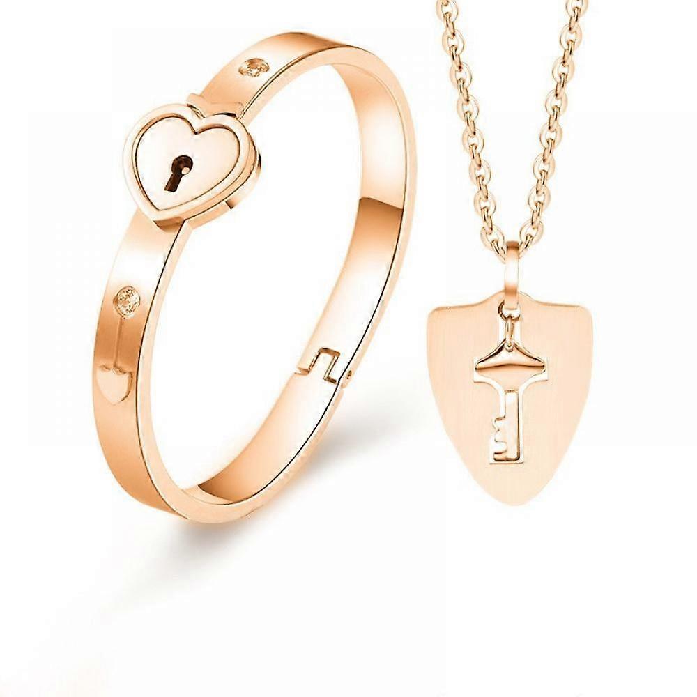 Luxsea Concentric Lock Key Titanium Steel Stainless Steel Jewelry Bracelet Necklace Couple Sets Rose Gold Square