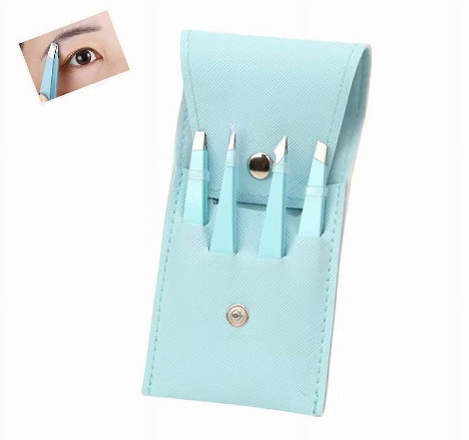 4 Pcs Stainless Steel Tweezers Set for Women, Precision Eyebrow & Facial Hair Removal, Splinter Tweezers, Blue