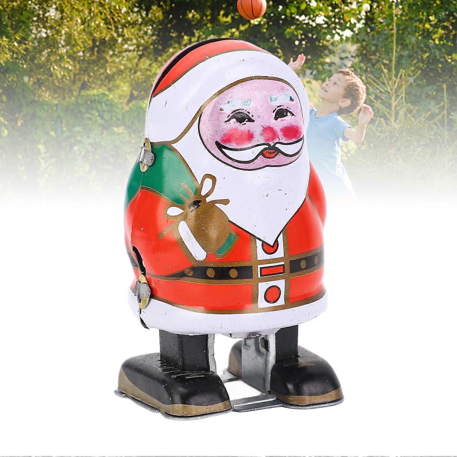 Vintage Iron Xmas Wind Up Walking Father Santa Toy Gift