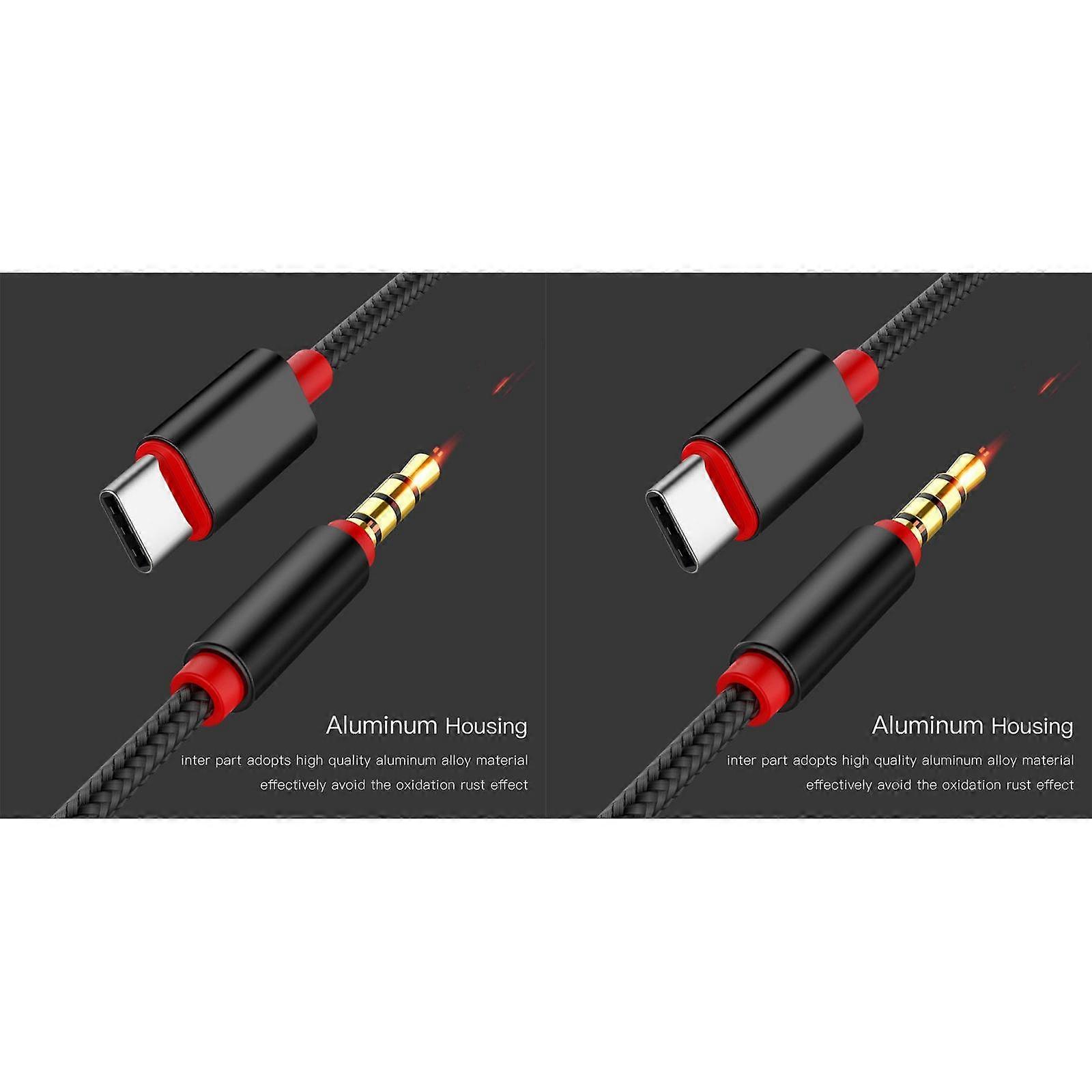 C Type To 3.5mm Audio Adapter Nylon Woven AUX Audio Car Audio Headphones Black 5pcs