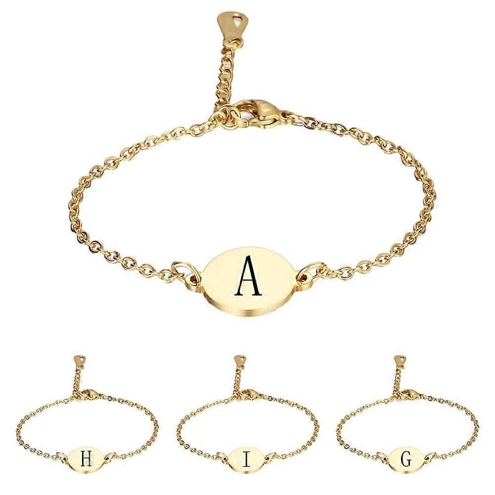MyBeauty Women English Letters Round Charm Titanium Steel Chain Bracelet Bangle Jewelry Gold