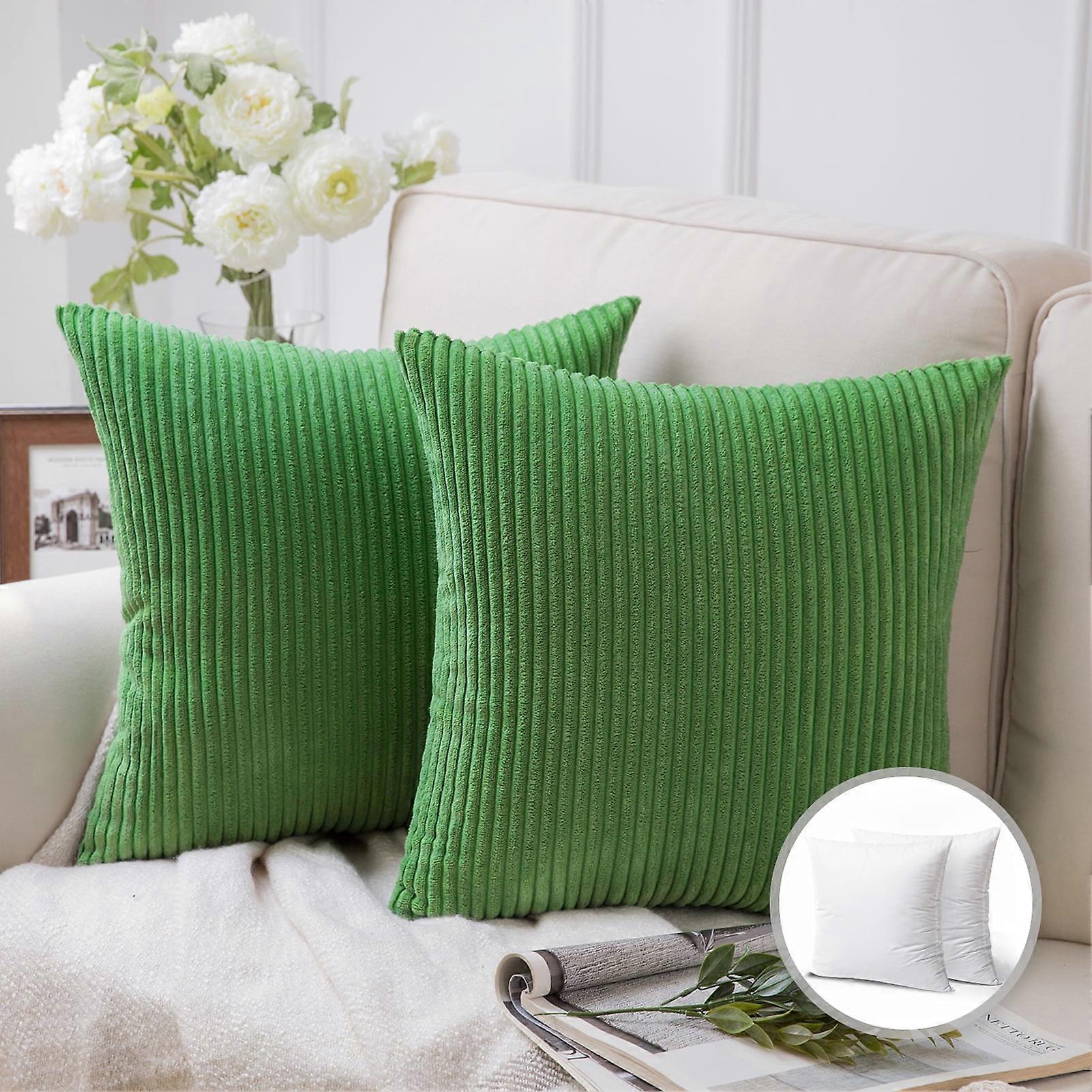 Soft Corduroy Striped Velvet Square Decorative Throw Pillow Cusion For Couch, 22" x 22", Green, 2 Pack