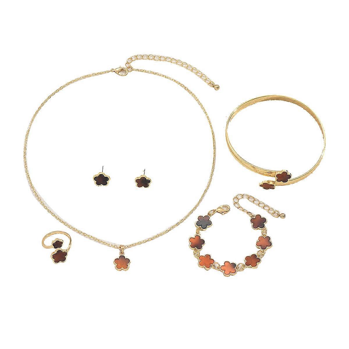 Jewelry Set, Necklace Earrings Bracelet Ring, Clover Flower Design, Alloy Inlaid