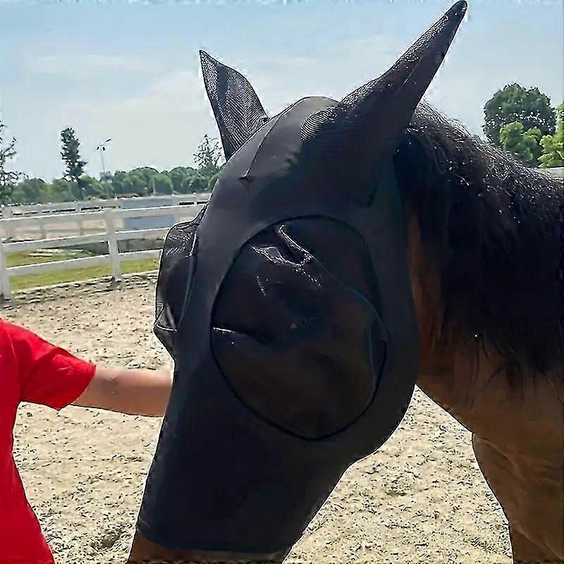 Horse Fly Mask with Ears in Stretch Fabric, UV Protection and Breathable for Small to Medium UK Horses, Comfort Fit