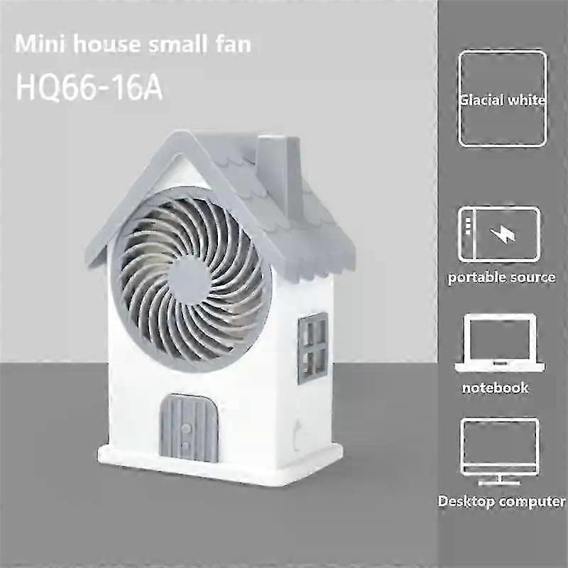 Electric Cooling Fan Creative Mute Support Endurance Modes Three Fan Blade Design Desktop Decoration Air ConditioningDescription:Name: Mini House FanModeling: HouseModel: HQ66-16Input voltage: 5VCharging time: 2-4hOutput voltage: 3.7VProduct size: 6.8*5*10.5cmBattery capacity: 300-500mAEndurance: 1-3 hoursSpecifications:1. Fresh color matching: beautiful multi-color optional2. Three fan blade design: simulate natural wind, soft wind feeling is just right, cut air evenly, let wind spread more evenly, and the blown wind is smoother and softer3. Palm fan: small and portable, necessary travel, small size, easy to fit into bags4. Simple operation: key to open, cool in summer5. Support endurance modes: support charger, mobile power supply, notebook and desktop computer chargingPackage Included:1 * Small Fan1 * Charging cable