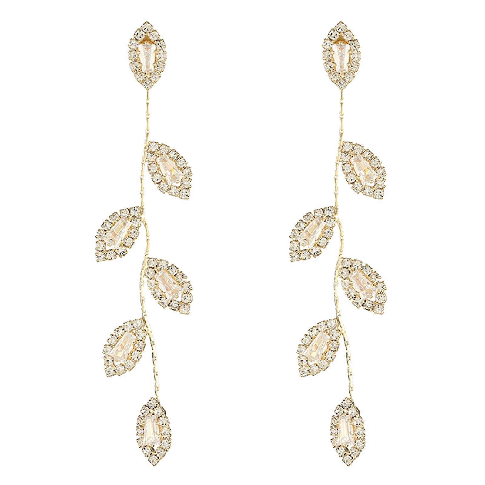 HANXIULIN Diamond Leaf Earrings Compatible with Women's Fashion, Long Tassel Dangle Earrings, Minimalist Bride Jewelry Gift