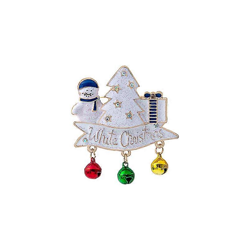 Christmas Party Brooch, Cartoon Snowman, Xmas Tree Bell, Clothing Pin with Dripping Oil Bowknot