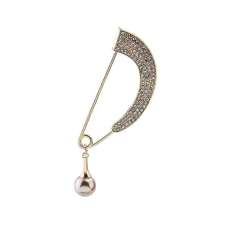 This brooch is made of alloy with electroplated processing. It features diamond studded design, a pearl arc pendant, and can be used as a shirt collar pin or anti-slip chest buckle. Color as shown in the picture.