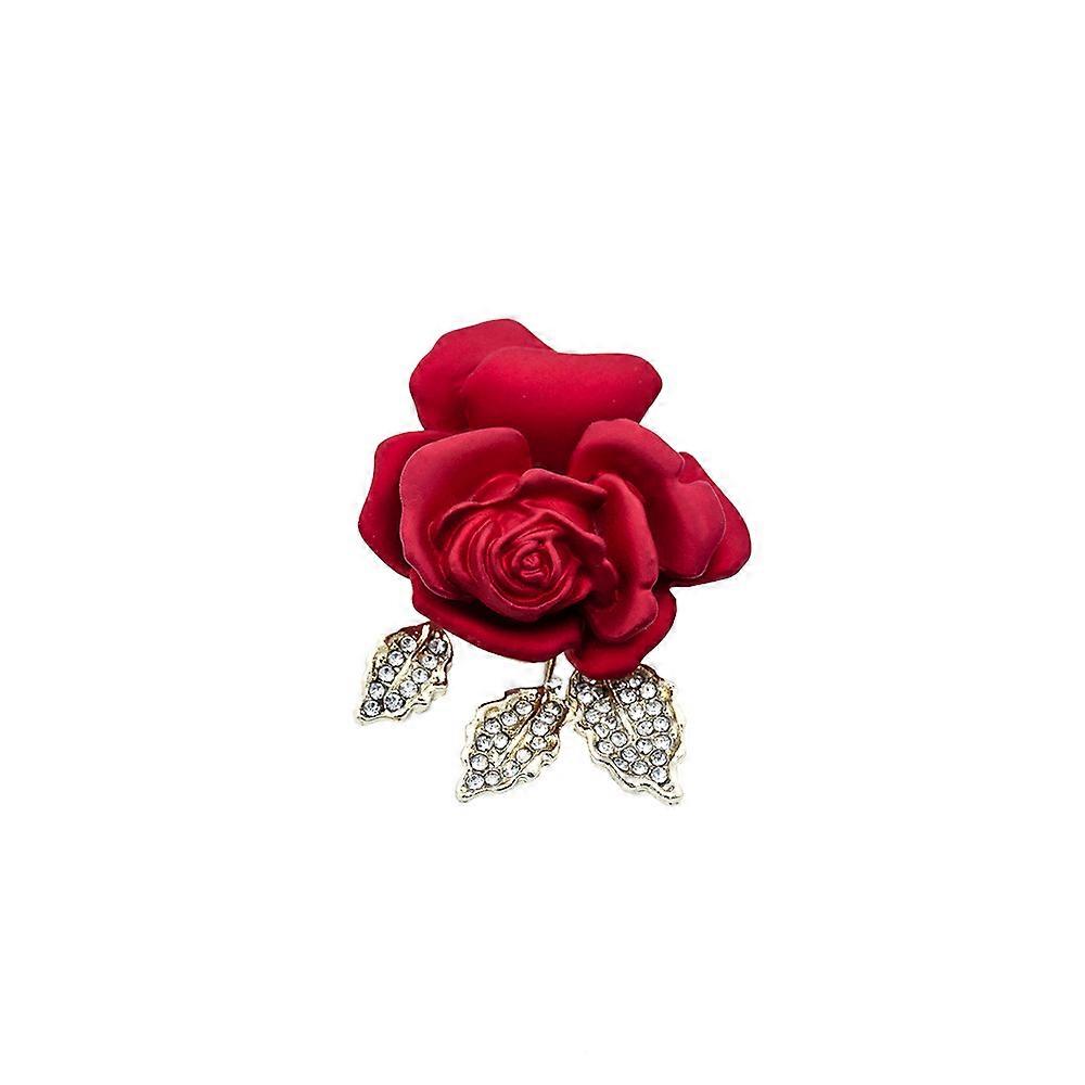 Rose Brooch, Fashion Elegant Red Camellia Rhinestone Suit Accessory Women's Clothing Pin