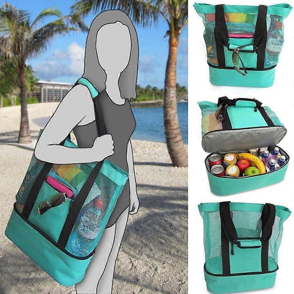 HeSaYep Picnic Bag Oversized Beach Mesh Tote Bag Outdoor Camping Cooler Bag, Green