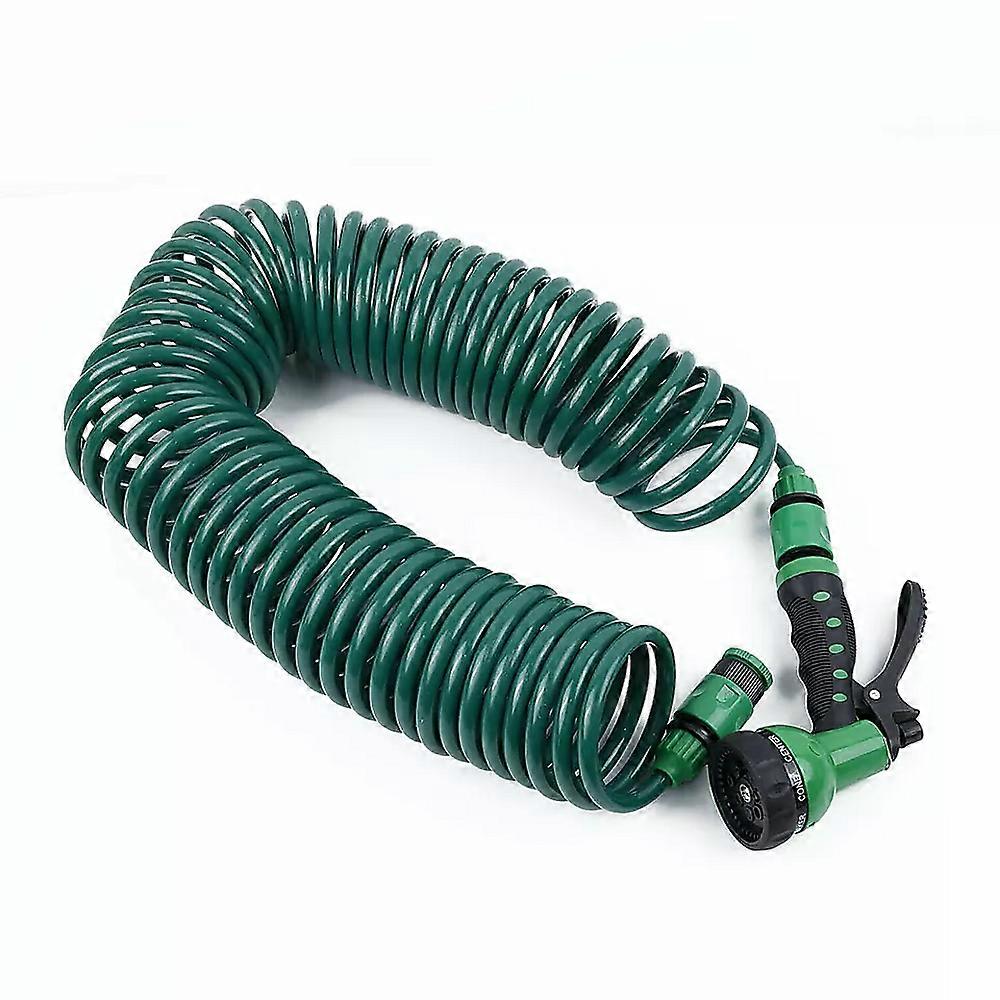 Heavy-Duty Coiled Spiral Hose Designed For Car Washing Garden Watering And Outdoor Cleaning Automatic Recoil For Quick And Easy Storage With No Tangles Or Mess Kink-Resistant Design Ensures Uninterrupted Water Flow During Use Lightweight And Easy To Handle Yet Built Tough For Demanding Outdoor Tasks Includes A 5-Function Spray Gun For Versatile Cleaning And Watering Needs Comes With A 3/4" Outside Tap Connector For Quick Setup Ideal For Smaller Gardens And Compact Outdoor Spaces Specifications