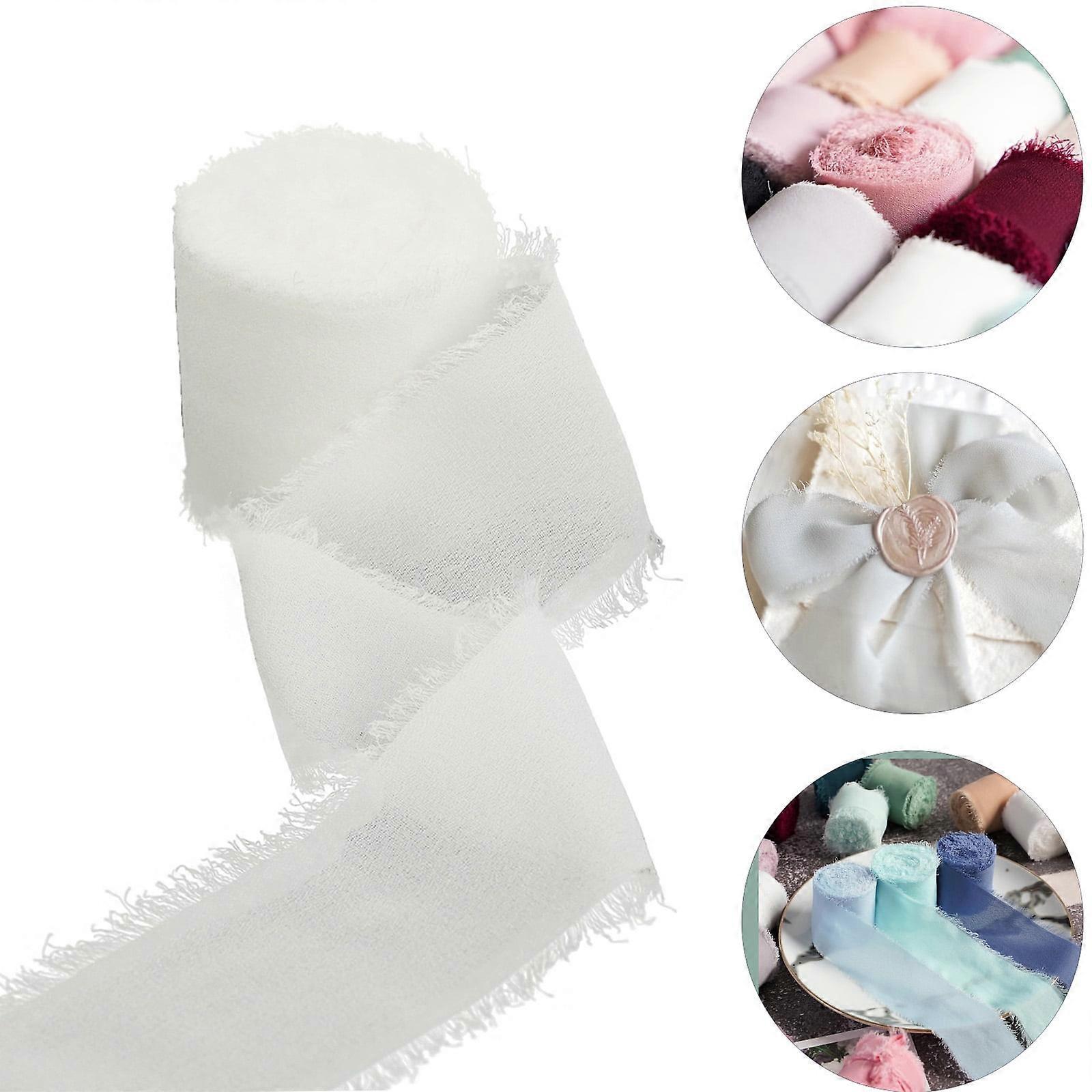 Seewan 3 Rolls Chiffon Silk Ribbon, 1.5"x5yd Fringe Fabric, Eco-Friendly for Wedding Invitations, Bouquets, Decor, Gift Wrapping & Bows