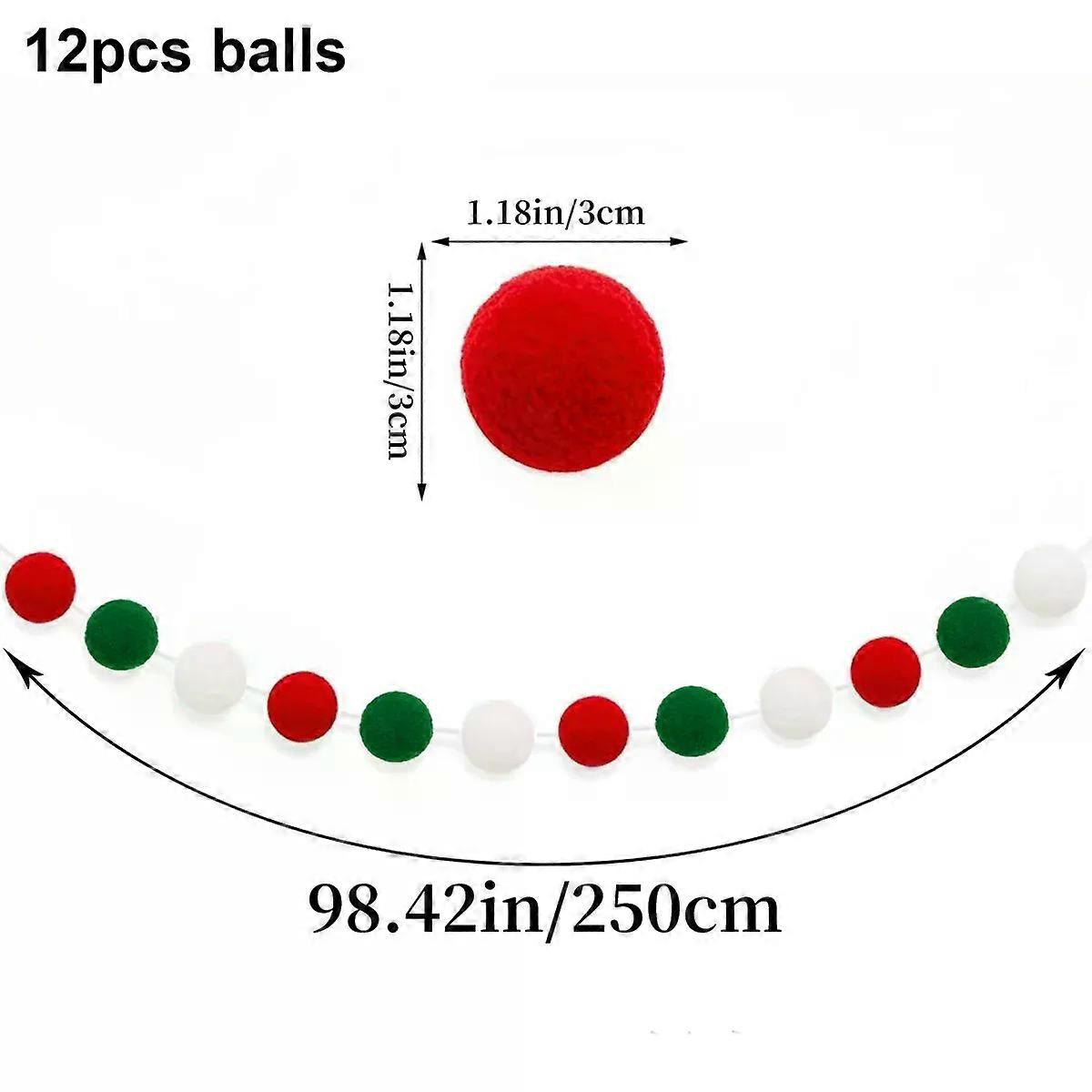 1/3packs Christmas Red White Green Pom Pom Garland Hanging Christmas Decorations for Tree Indoor Home Room Xmas Garland Ornament