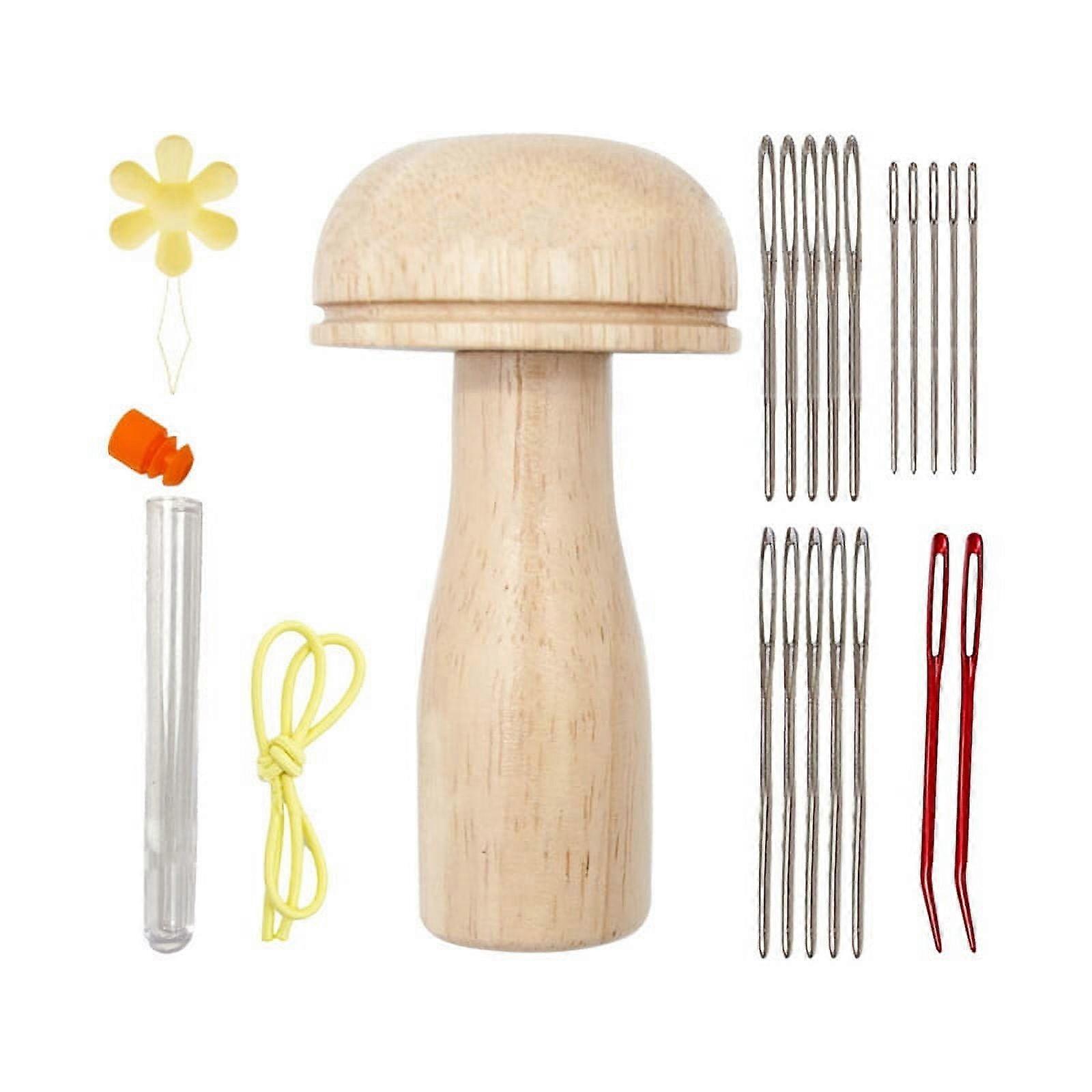 Wooden Darning Mushroom Needle Thread Kit Embroidery Accessories for DIY Hand Sewing Socks Clothes Home