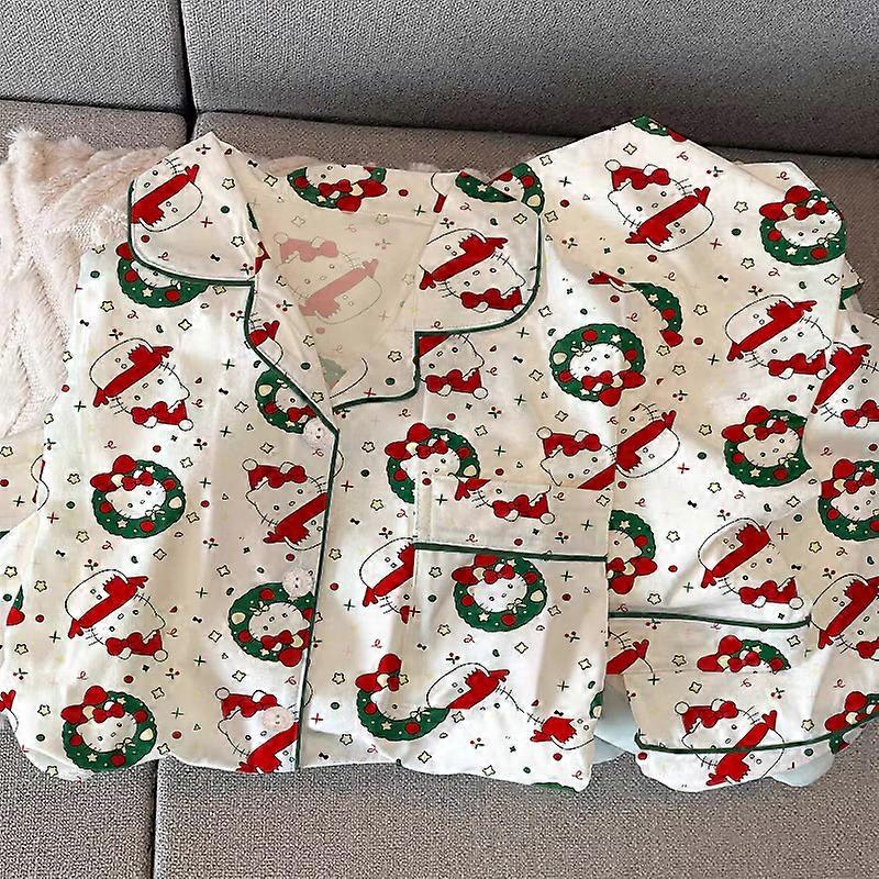 Sweet Christmas Snowman Cartoon Cat Autumn Pajamas Women's Long Sleeve Set Cartoon Girl Heart Spring Summer Homewear KK34141#M【80-100斤推荐】