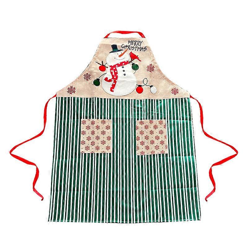 2025 New Christmas Decorations Old Man Linen Creative Adult Apron Restaurant Atmosphere Dress Up Green Striped Christmas Snowman Apron