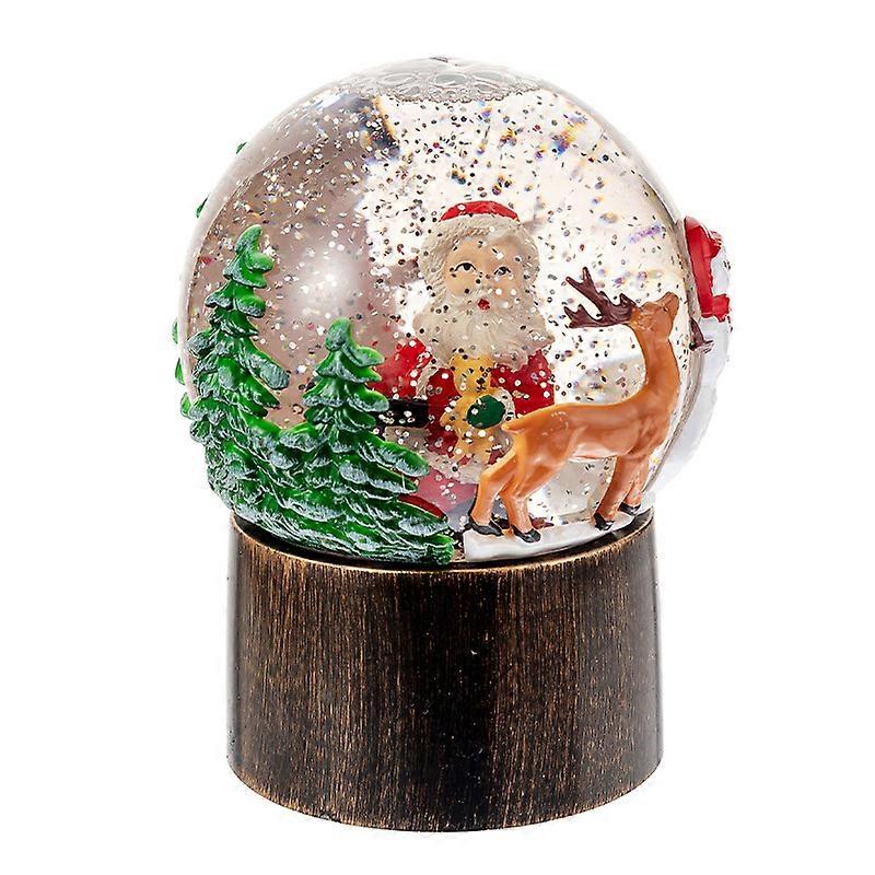 Christmas Decoration Horse Lantern Crystal Ball Automatic Snow Music Box Gift Santa Claus Large Oil Lamp - Old Man and Deer (Flat Style) 13.5cm*11cm*2