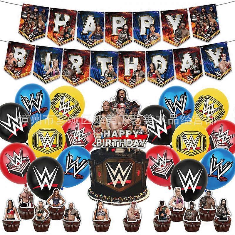 WWE Birthday Party Decorations Set with Banner Cake Toppers Balloons Multiple Sizes Metallic Theme Party Supplies