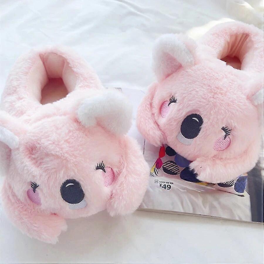 Women's Koala Shape Cotton Slippers, Warm Indoor, Non-Slip in Pink and Grey