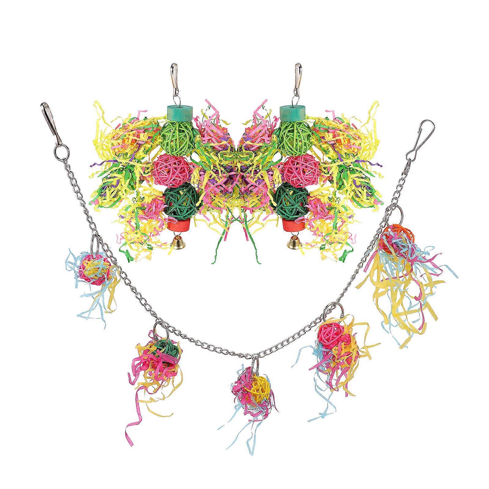 Colorful Parrot Bite Toy Paper Ball with Iron Chain 3Pcs for Birds