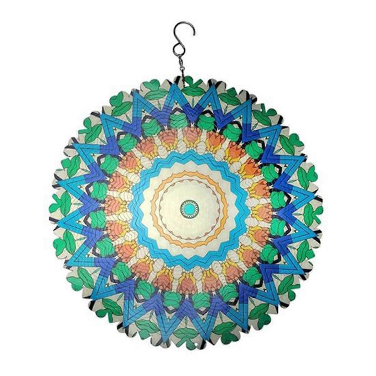 3D Colorful Iron Wind Chime, Mandala Pattern 3D Rotating, Wall Hanging Decorative Art Windmill Home
