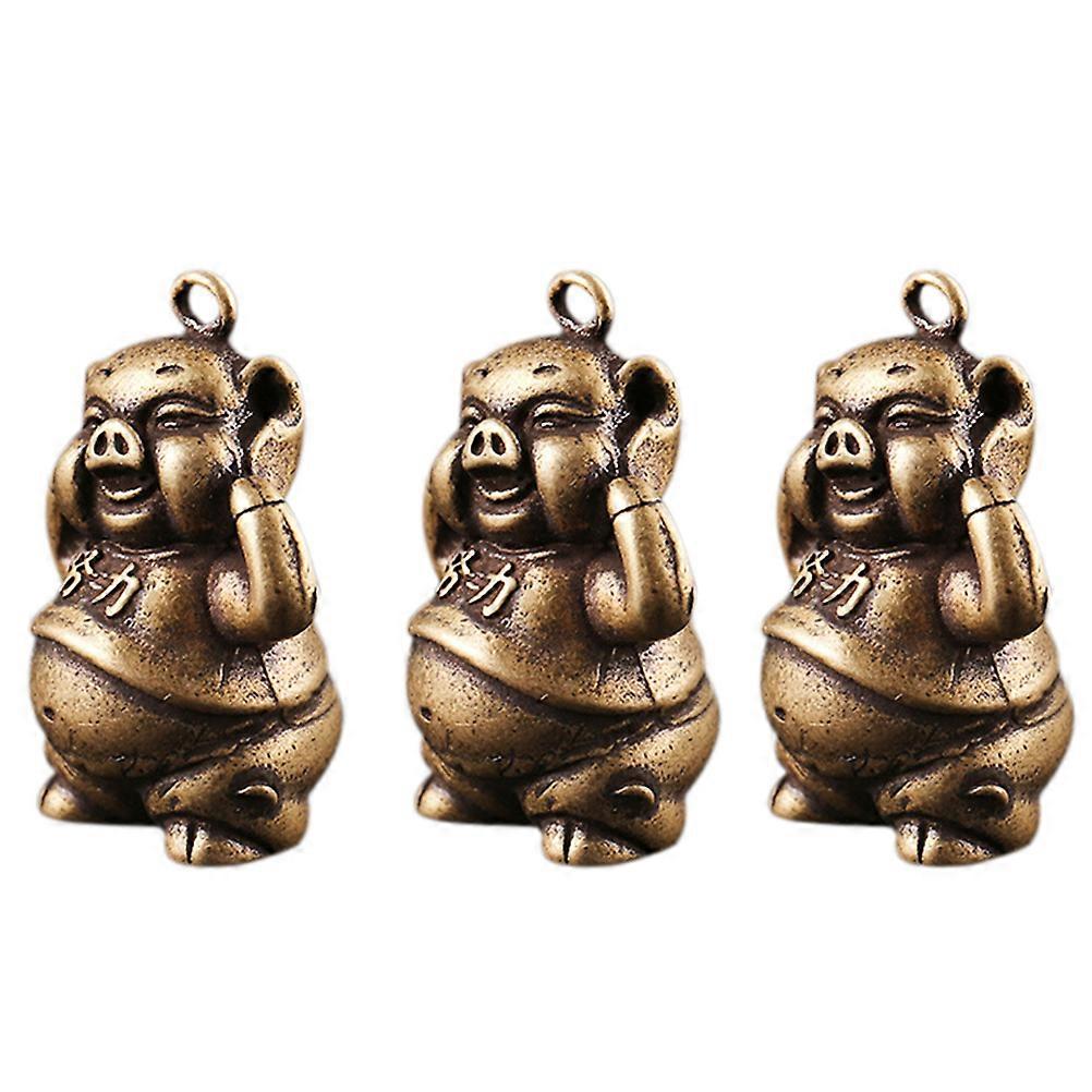 Mini Pig Key Ring Pendant 3Pcs Golden Brass Vintage Charm Key Chain Pendant for Decoration