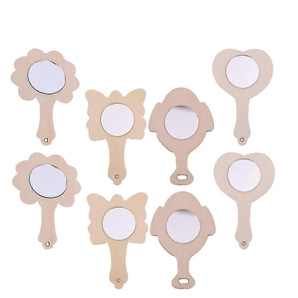 DIY Wooden Mirror 8Pcs Beige Wooden Mirror for Decorate Use Craft Boosts Creativity