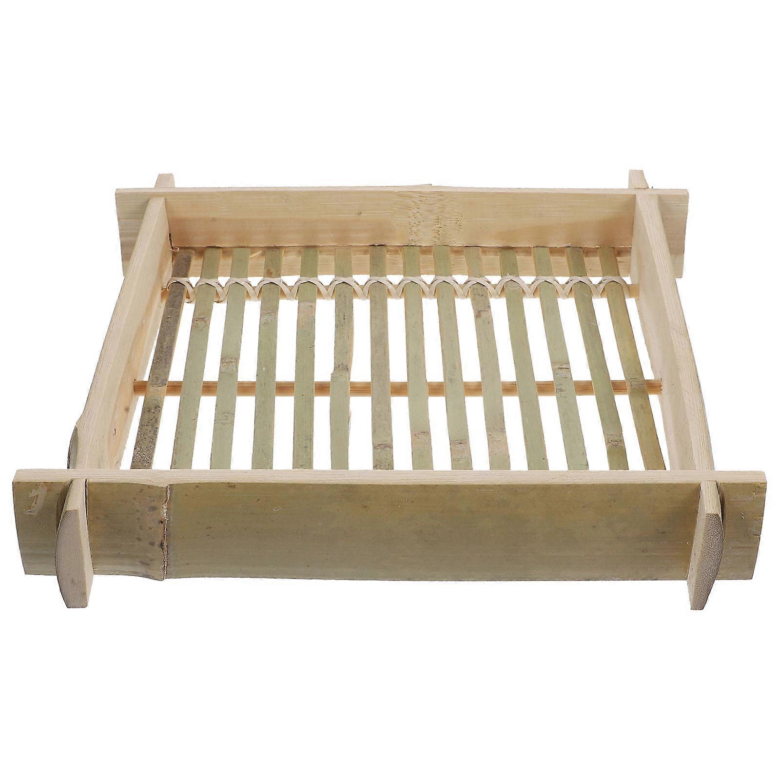 Japanese Cold Noodle Dish Sushi Mat for Restaurant Serving Khaki Bamboo Plate