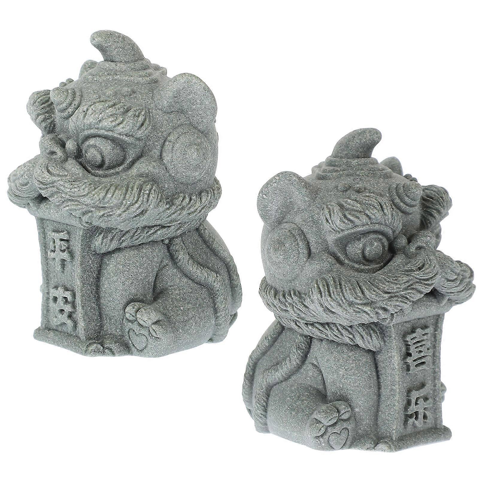 Lion Figurine 2Pcs Grey Resin Craft Figurine for Auspicious Luck Decor