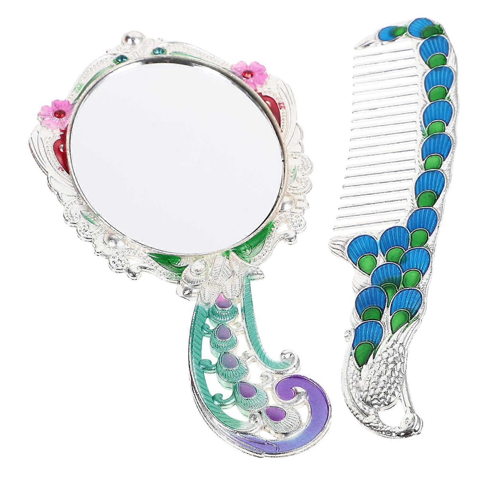 Metal Handheld Makeup Mirrors with Comb for Women 2Sets