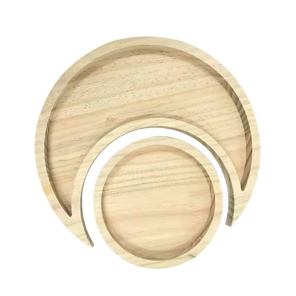 Wooden Display Tray 2Sets Khaki Moon Shaped Tray for Elegant Gift and Storage