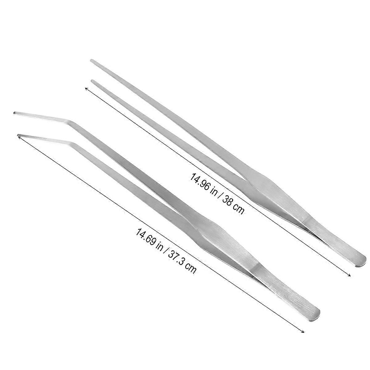 Straight Tweezers Aquarium Tank Tools for Aquarium Use 2Pcs Silver Set