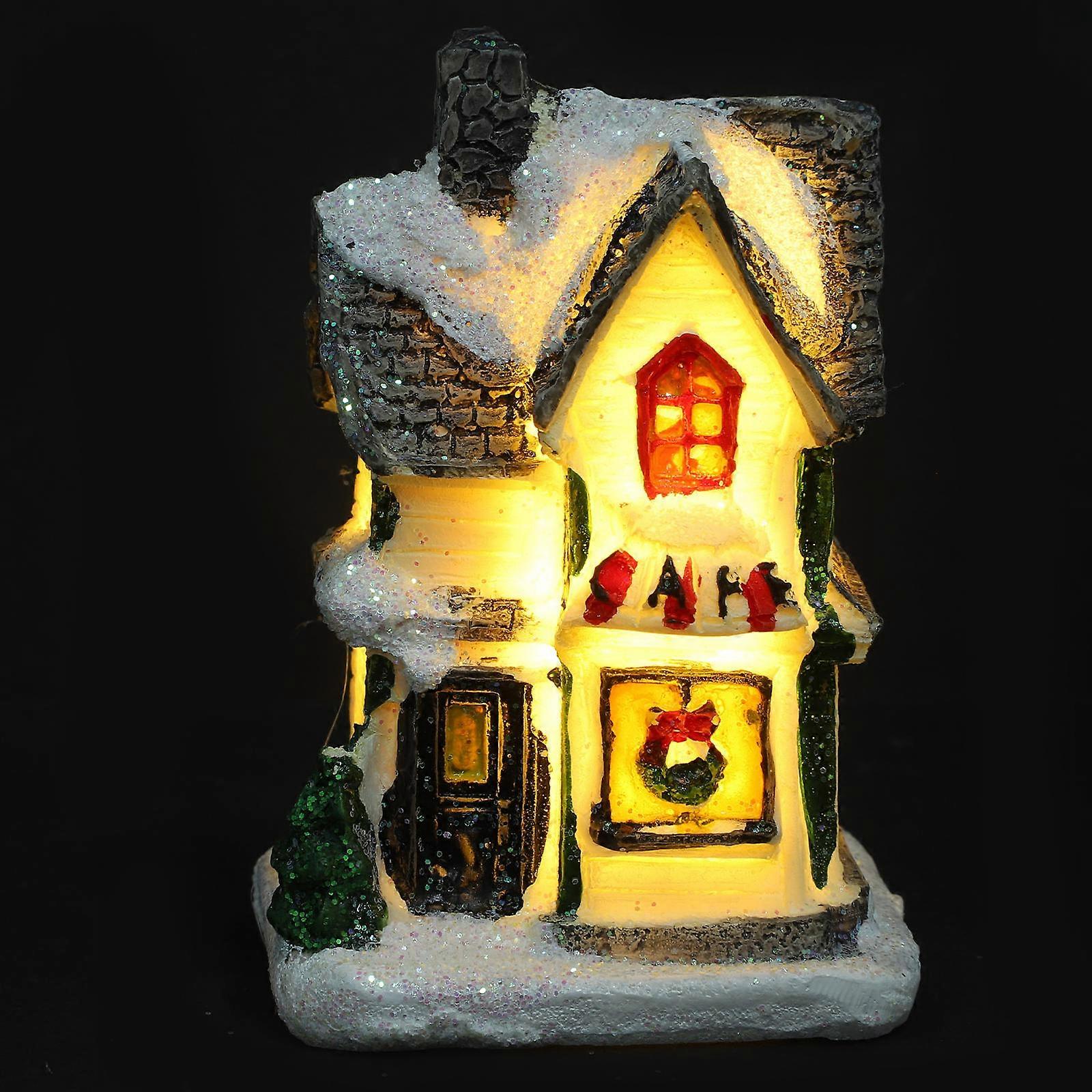 Resin 1Pcs Light Yellow Christmas LED Light House Cozy Snowy for Decoration