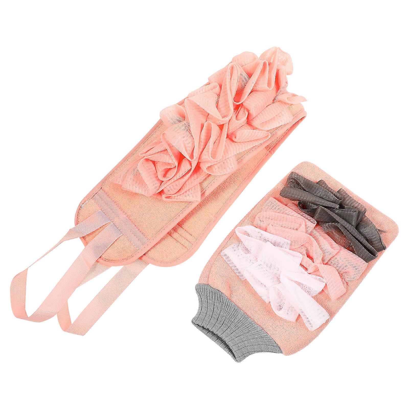 Soft Pink Bathing Gloves Household Double-Sided for Bath 1Set Toweling