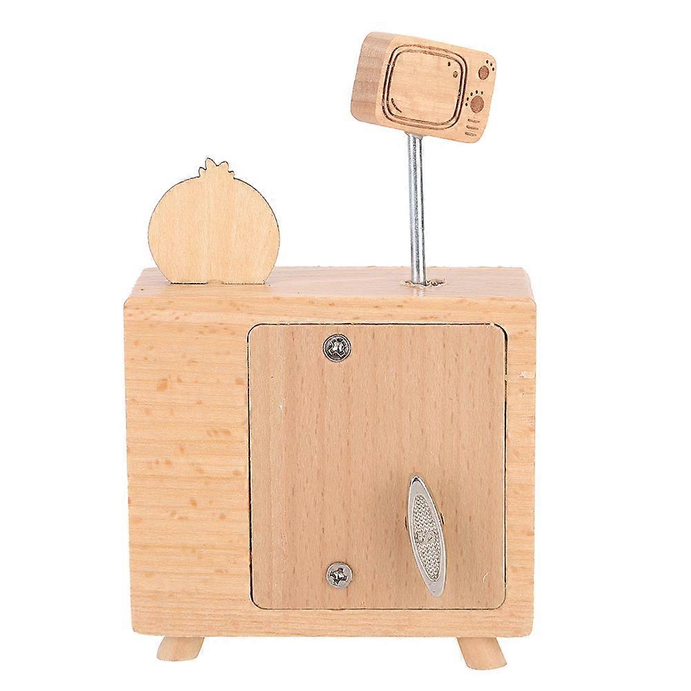 Beech Wood Cactus Music Box 11x8x3cm Vintage TV Shape Gift
