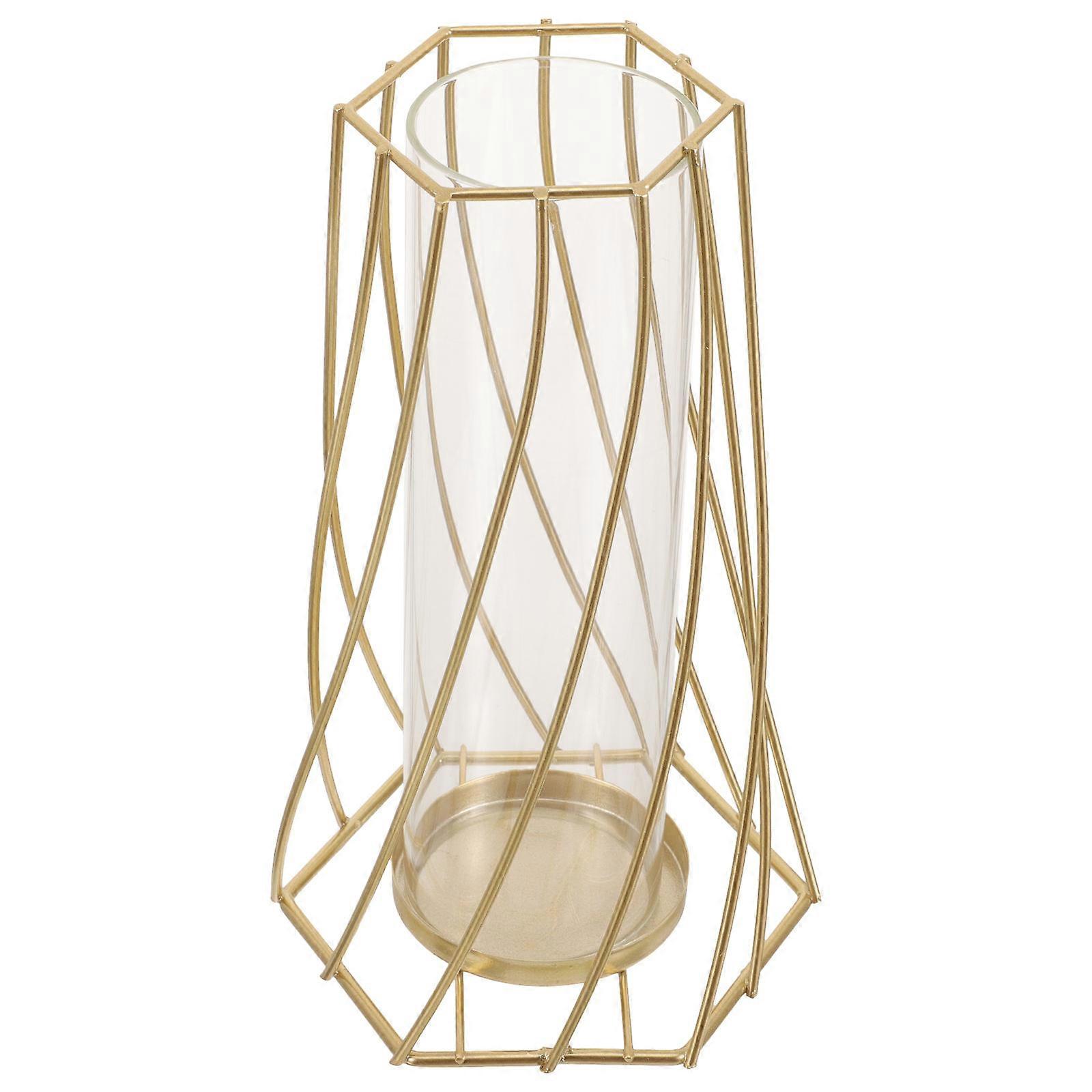 Geometric Grid T-shaped Flower Vase Iron and Glass Material for Adults Reading Room Ornament 21x11cm 1Set