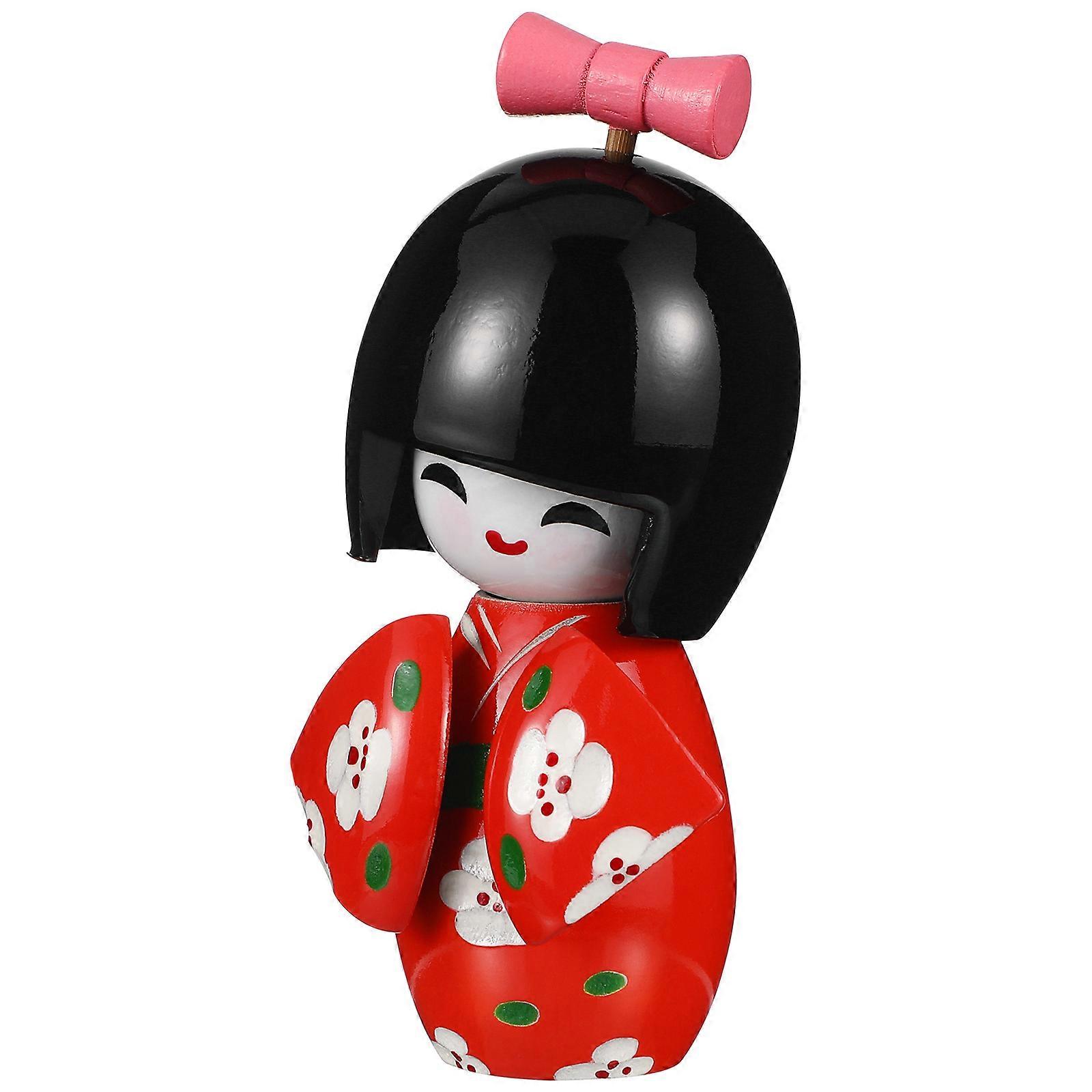 Japanese Kimono Doll Wooden Dolls for Decoration 2Pcs Red Artistic Decor