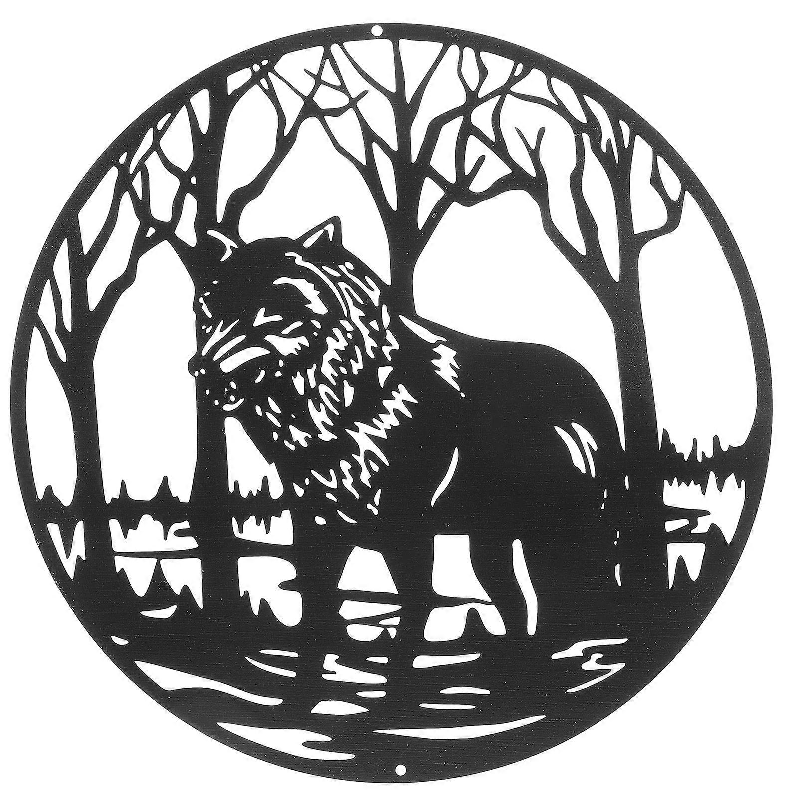 Metal Wall Signs Decorative Sign Wolf Sculpture Indoor Decoration Metal Square Shape Artistic Style 1Set