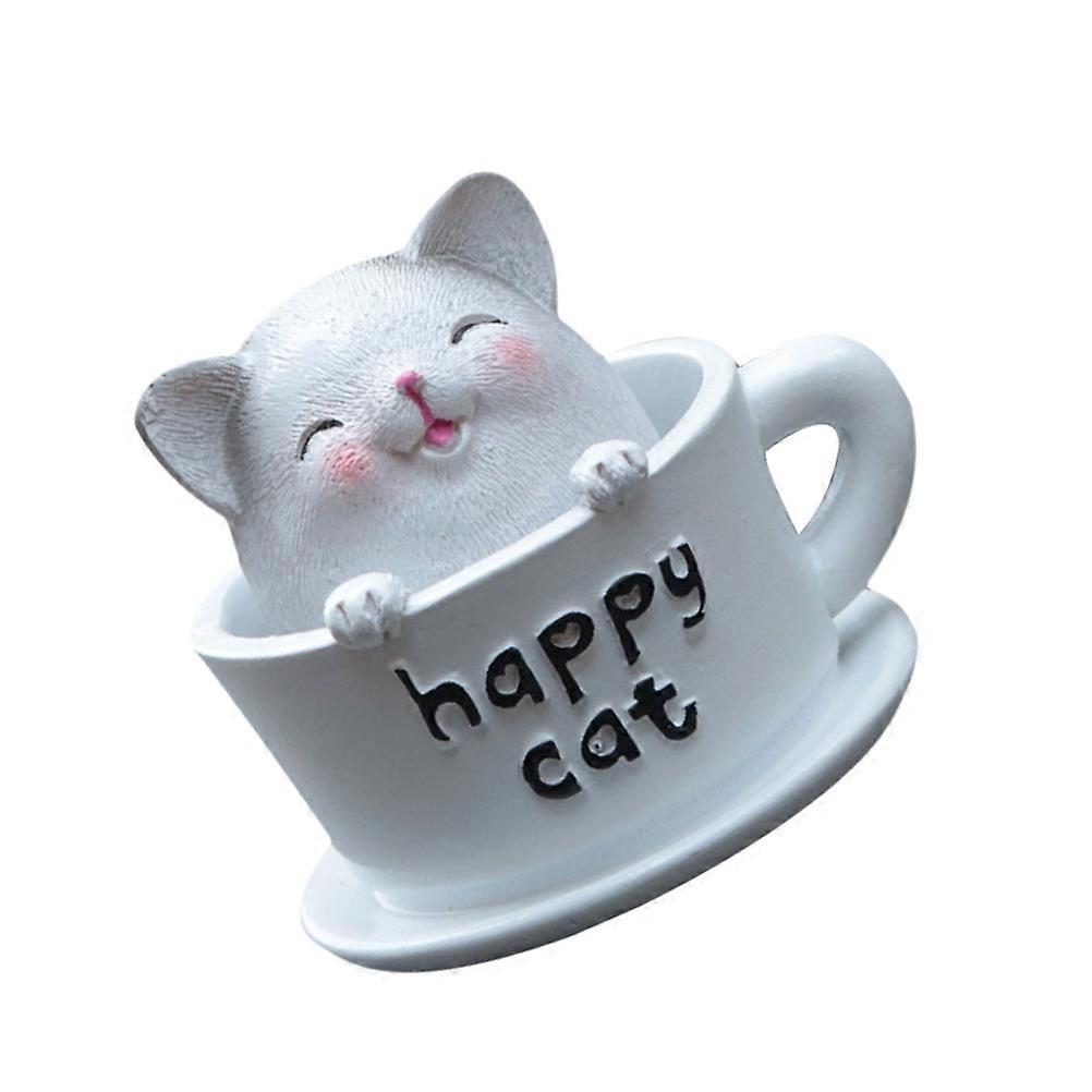 Cartoon Cat Figurines Teacup Cat Statue for Desktop Use 2Pcs