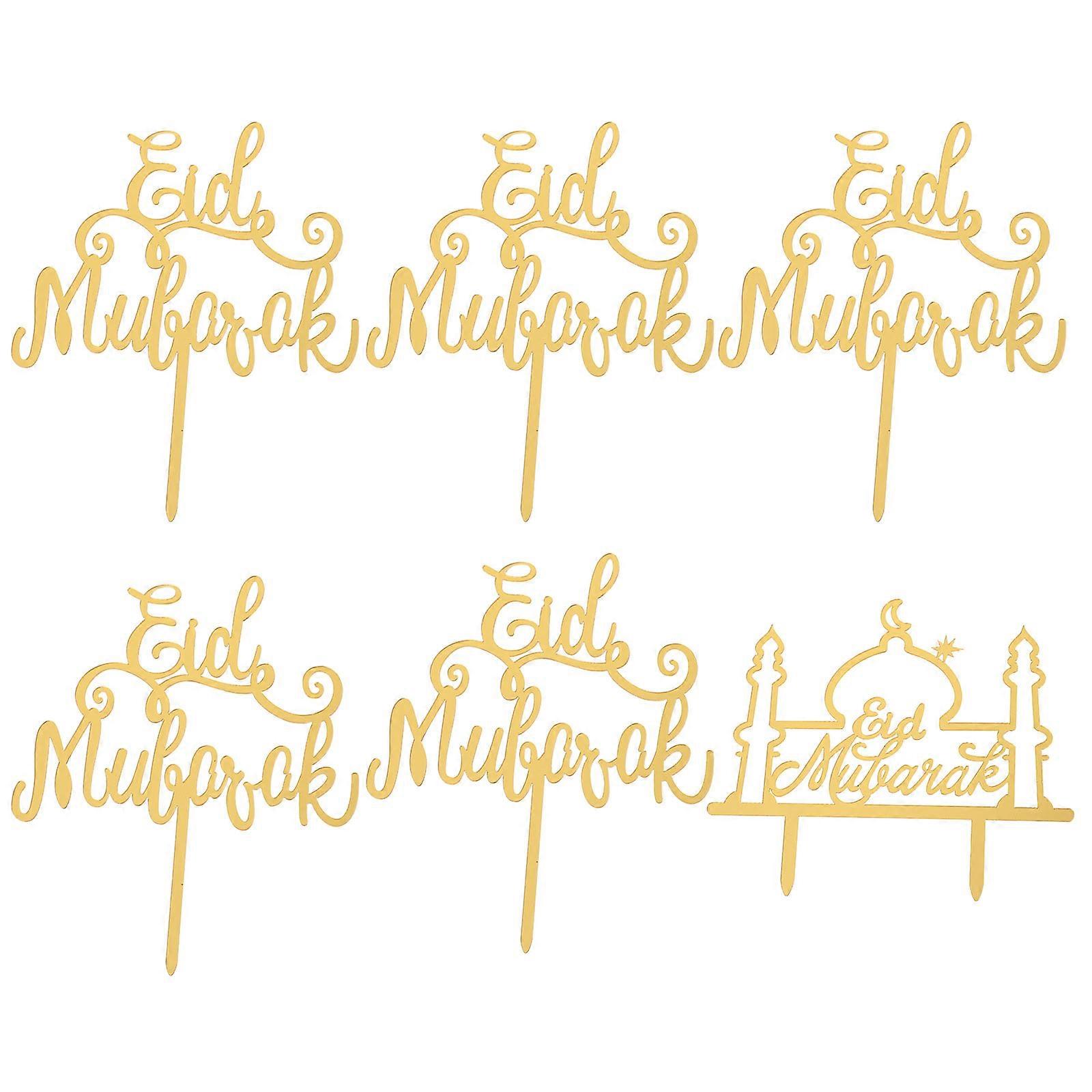 Islam Festival Dessert Toppers 6Pcs Golden PVC Cake Toppers for Decor with DIY Freedom