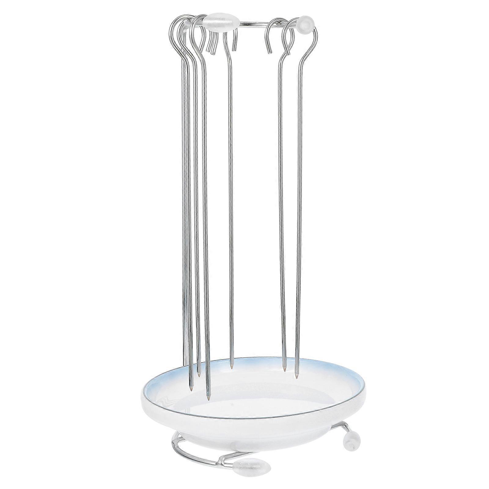 Barbecue Skewer Stand Stainless Steel Rack For Outdoor Cooking Equipment With Drip Tray 2 Sets