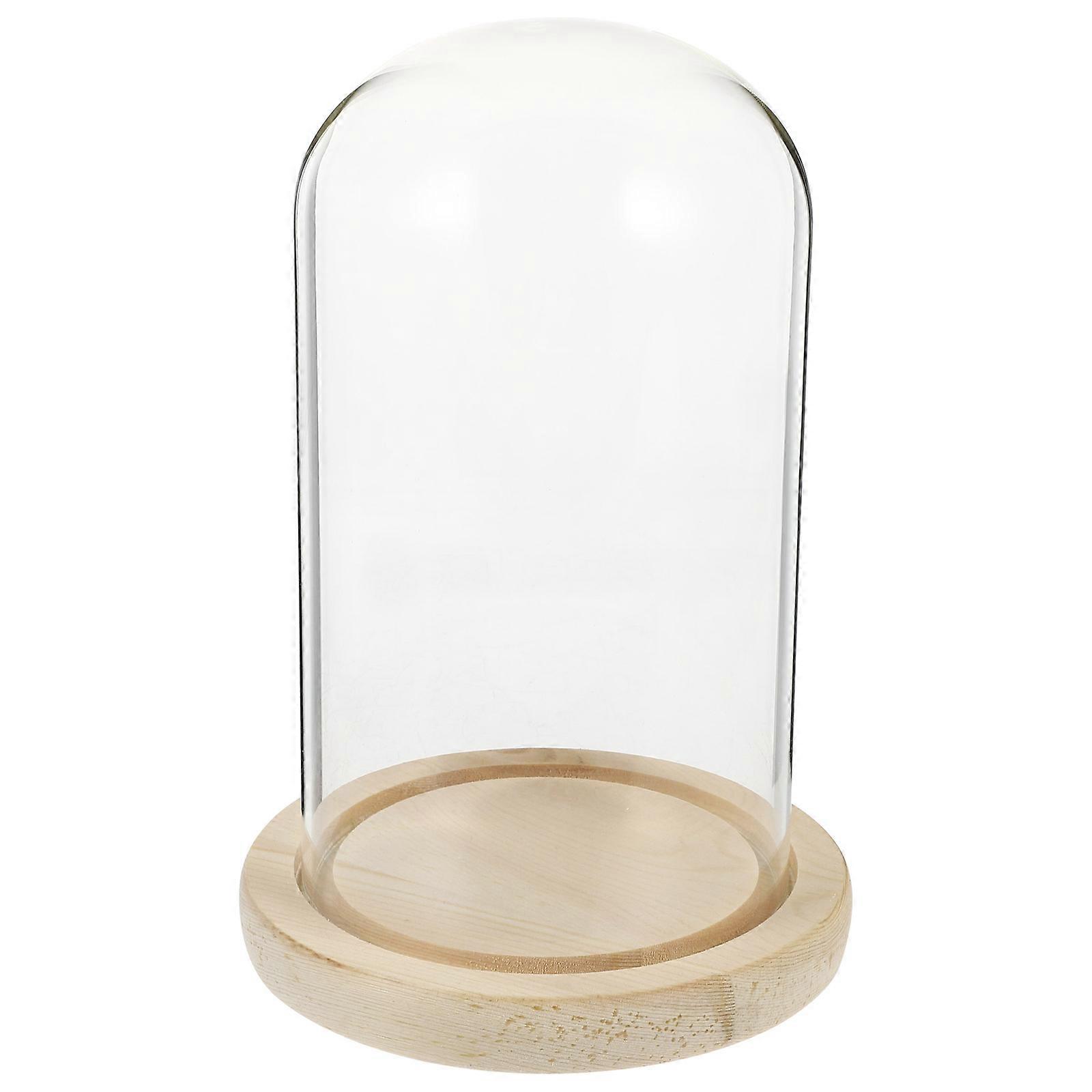 Decorative Glass Cover for Flower Display with Wooden Base 2Sets