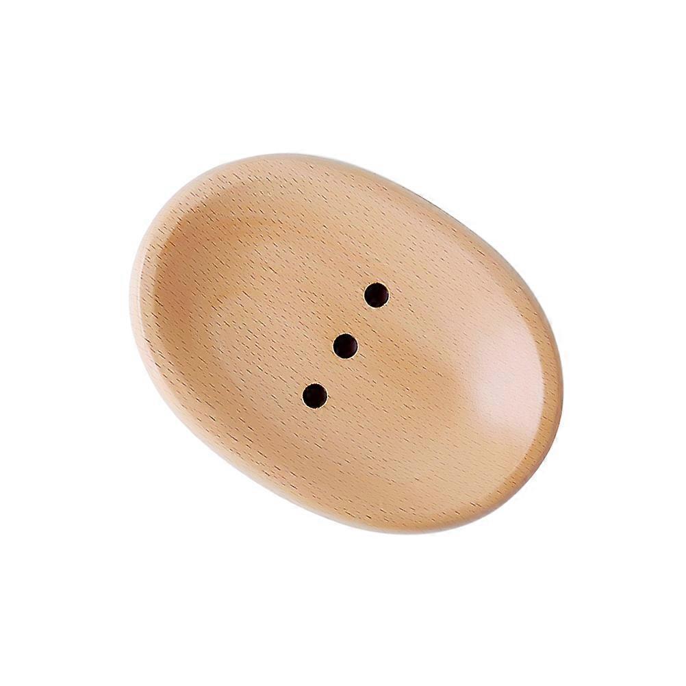 Soap Container Wooden Oval Shaped Draining Storage Accessory Khaki 13.4x9.6x2cm 1Pack